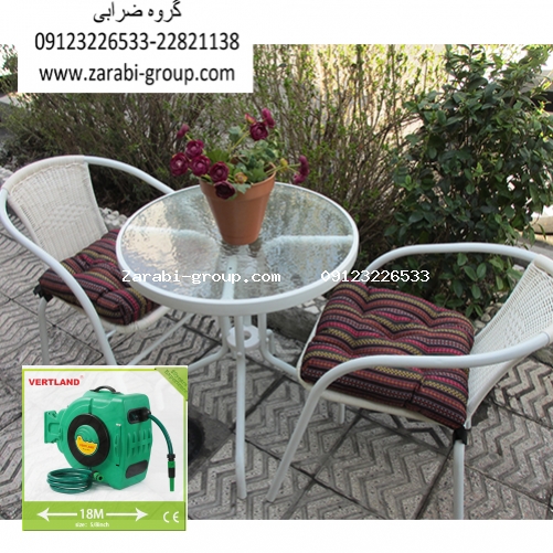 میزصندلی دونفره جم و جور حصیری آلومینیومی ضد آب آفتاب مخصوص فضای باز