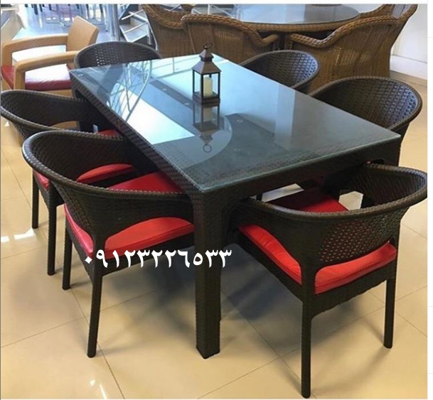 • میز صندلی شش نفره پلاستیکی ( دارای طح حصیر )