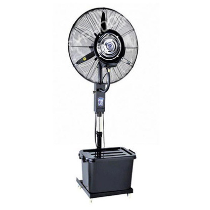 آب اسپری شده و همچنین میزان باد نیز قابل تنظیم می باشد. در زیر پنکه نیز چهار چرخ قرار
